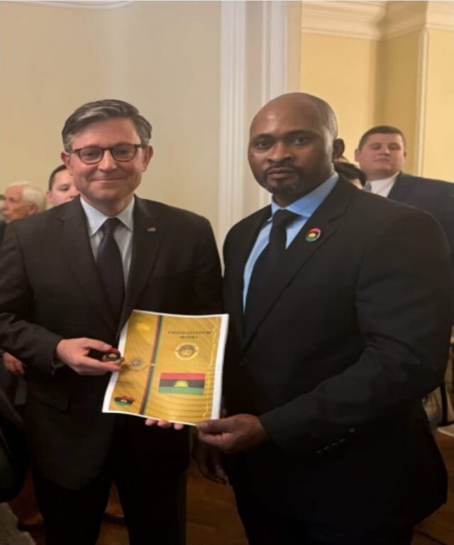 While in the United States, Nkere reportedly engaged with several U.S. government officials, including Senator Ted Cruz and Speaker of the House Mike Johnson, in his role representing BRGIE.