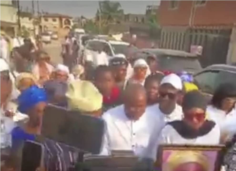 In a now-viral video, the former couple were seen in a sombre mood as they led a group of family members, friends, and sympathisers to honour the late Gloria Williams who died in February.